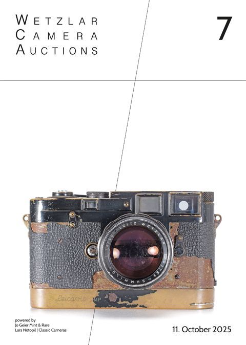 In total, around 60 examples of the M3 pre-model camera were produced in 1953 with numbers ranging from 001 to 0067, of which only a few remain worldwide today. Topplate with the typical different engraving of the manufacturer's designation, as well as corners at the front and back. Special winding lever and self-timer lever, rear door with button for film marking pin. With matching double lever Summicron 5 cm f/2.
